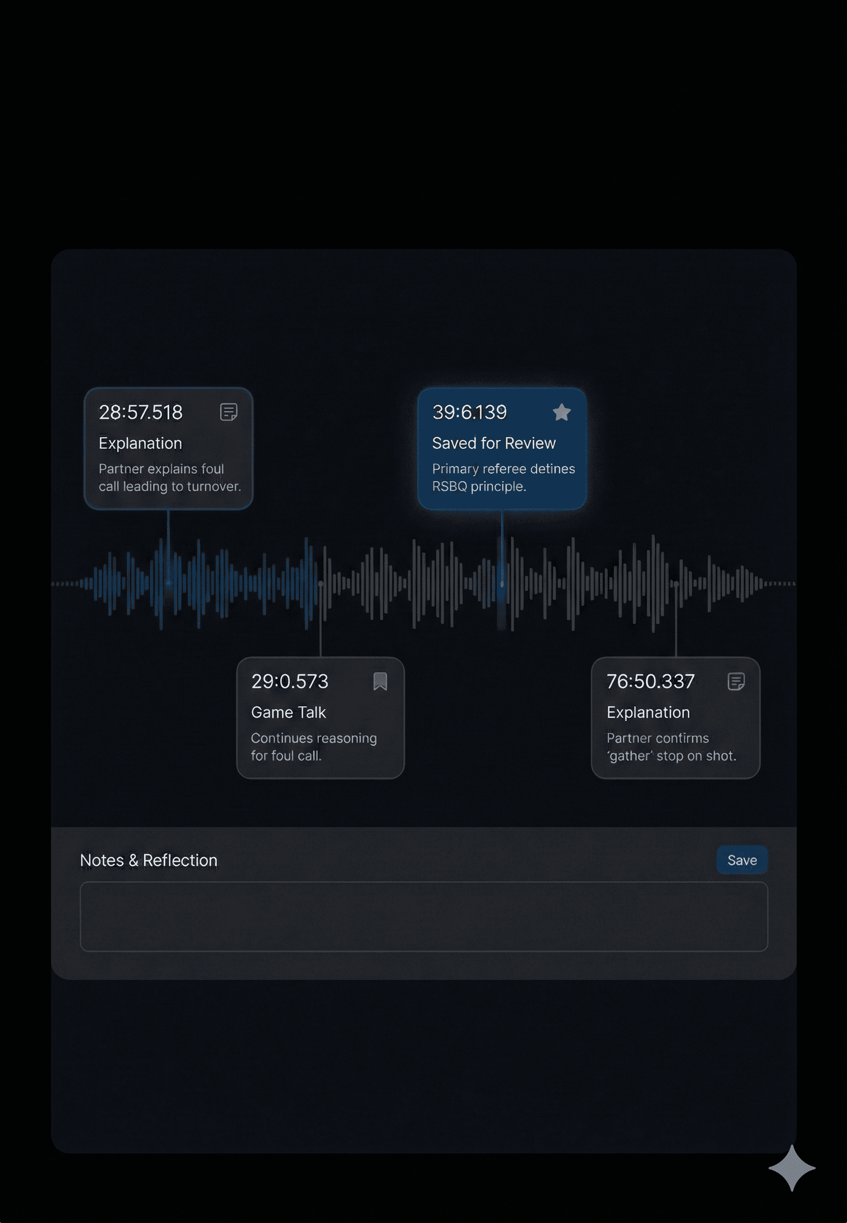 Use real game moments to support training, rule study, and ongoing referee education.