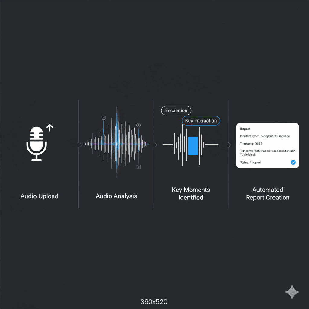 See patterns in how you explain calls, answer questions, address friction, and talk under pressure.