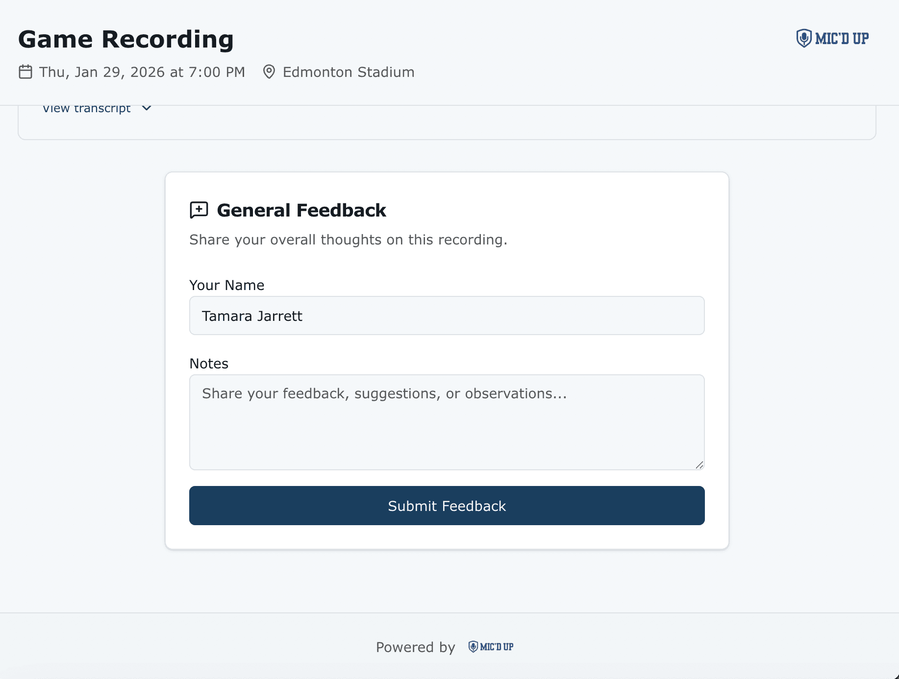 Review audio shared by your referees, and get the context you need to coach with more clarity.